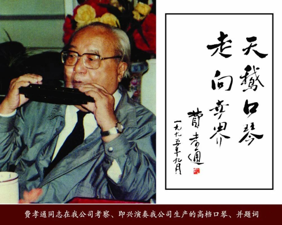 1995年5月,原中央政協委員費孝通來我公司視察,即興演奏口琴并題詞