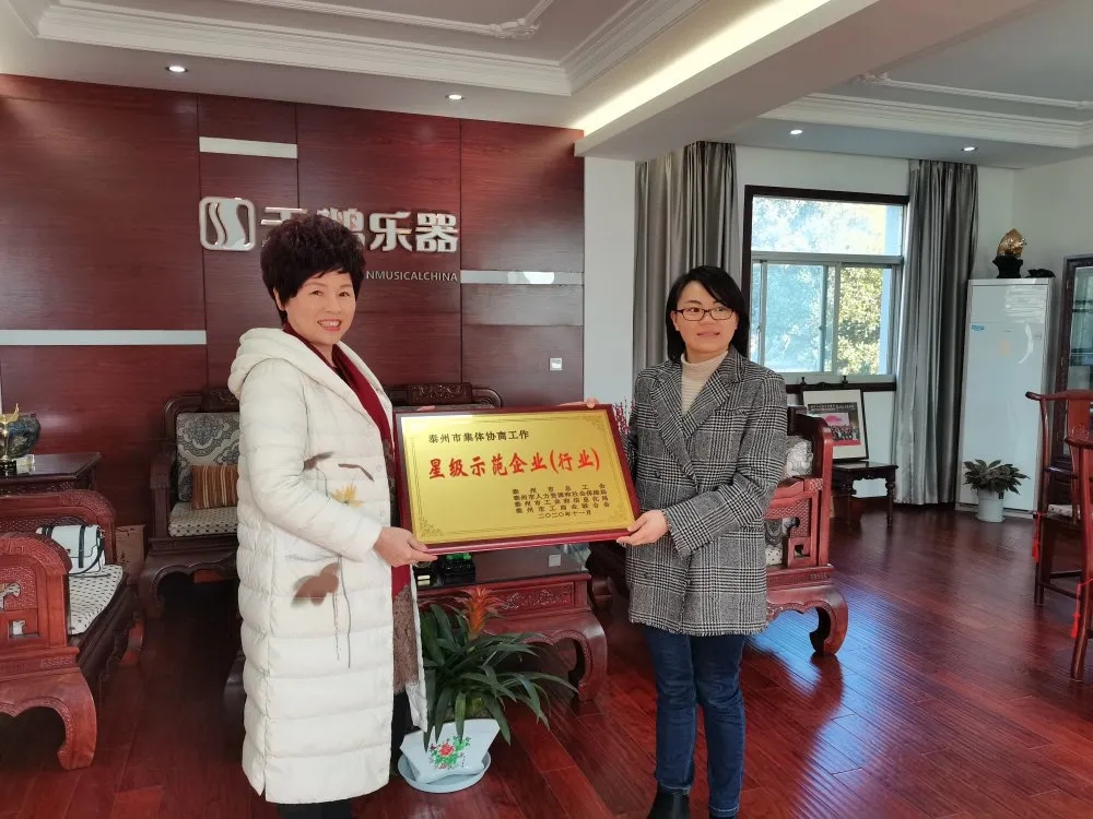 天鵝樂器被評(píng)為“泰州市集體協(xié)商工作星級(jí)示范企業(yè)(行業(yè))”