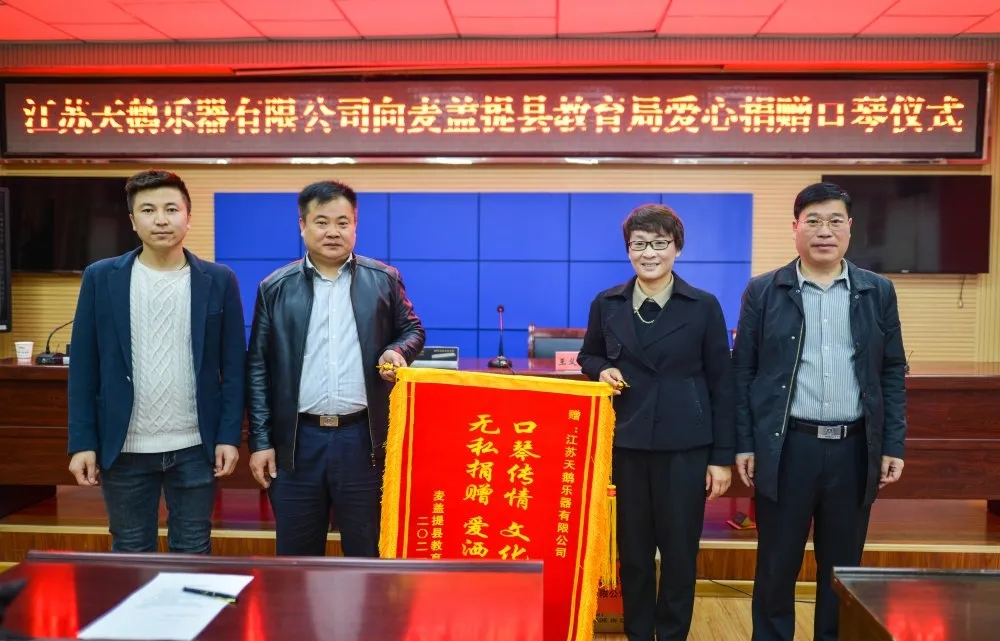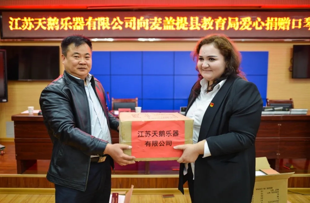 人們常說“社會多一份關(guān)愛,孩子就多一份信心,我們的未來就多一份希望”。新疆位于我國西部邊陲,天鵝樂器非常關(guān)心新疆、特別是南疆的教育事業(yè)的發(fā)展,現(xiàn)委托山東援疆劉洋老師向麥蓋提縣教育局捐贈口琴500把,用于音樂課堂或社團教學(xué)。