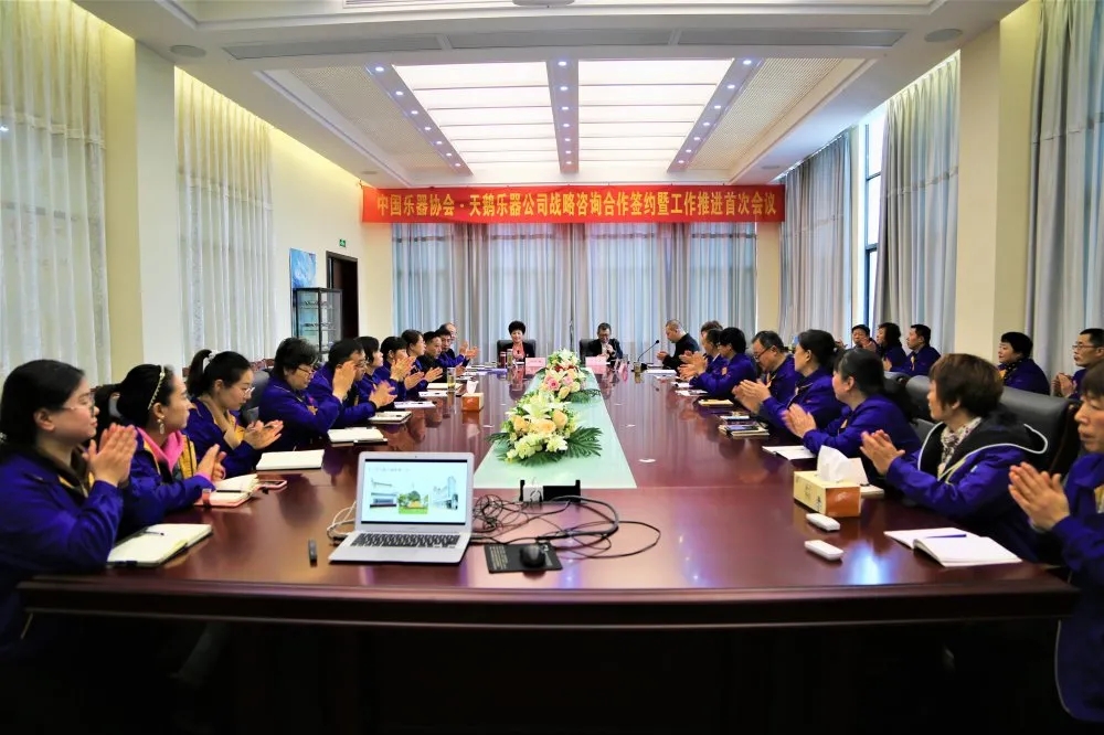 4月8日上午9點,中國樂器協會專職副理事長孫瑞勇、中國樂器協會副秘書長錢富民、中國樂器協會業務部副主任常杰蒞臨天鵝樂器,召開中國樂器協會·天鵝樂器公司戰略咨詢合作簽約暨工作推進首次會議。