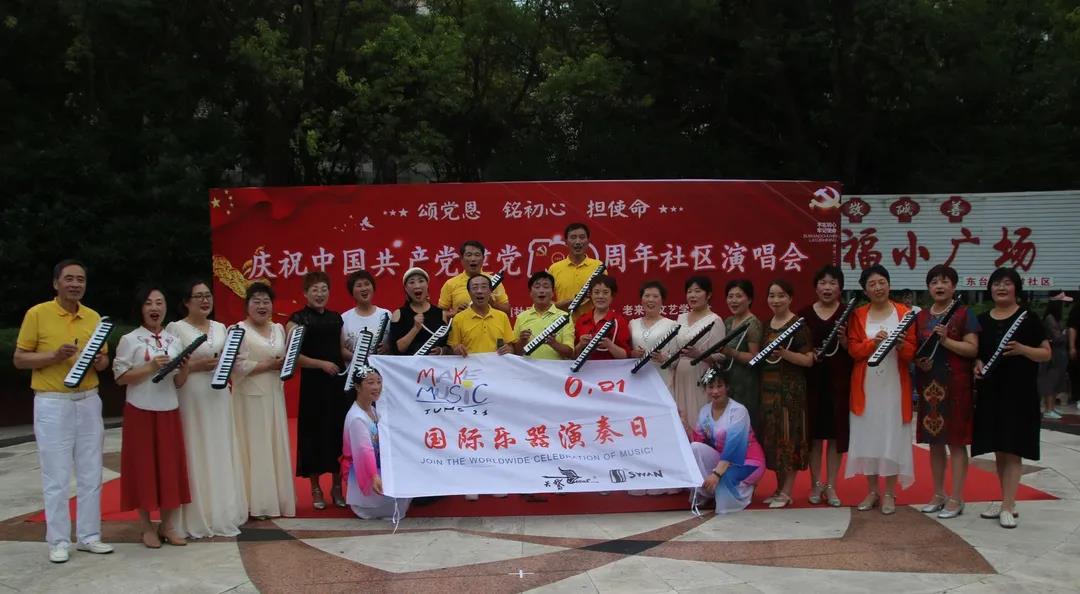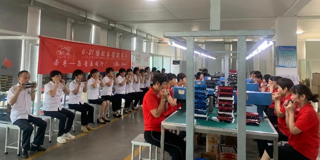 為慶祝中國共產黨百年華誕,充分展示天鵝公司推動音樂教育“三進”工程的成果,天鵝公司在6月21日這一天組織12個口琴樂隊在公司廣場、音樂廳及多個車間舉行口琴演出聯誼活動。天鵝樂器作為聯合主辦單位,聯合了紫丁香天鵝口琴社、嘉興市嘉善縣青少年宮、嘉興琴藝口琴培訓中心、南京強國口琴藝術團、山東德州大眾口琴樂團、大同市御河九號口琴隊、蘭州市城關區東崗小學、云南知青口琴樂團、青島口琴大聯盟、東臺市老來樂藝術團等單位共同開展“6·21國際樂器演奏日”,體現音樂帶來的快樂,給人注入實實在在的活力和動力。